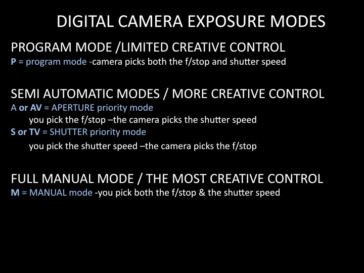 This is a brief slideshow highlighting the different auto & semi-auto exposure modes