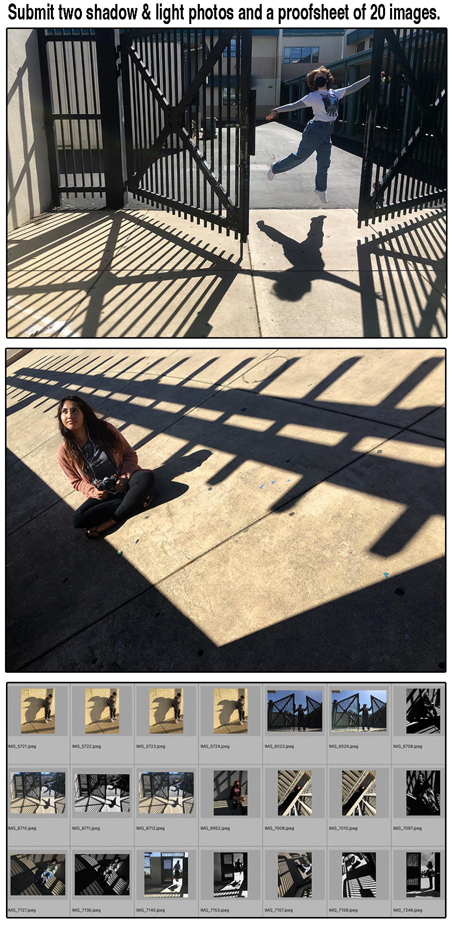 •Three images: your 2 favorites and a screenshot of 20 images from your smartphone shoot.