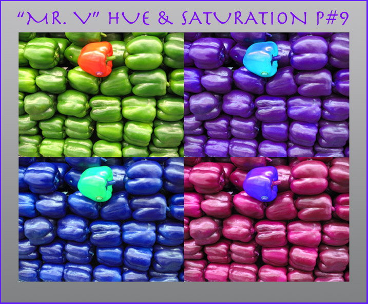 Paste the original photo and the 3 new hue-saturation versions of your photo onto a new Photoshop background (similar to the photo below)
