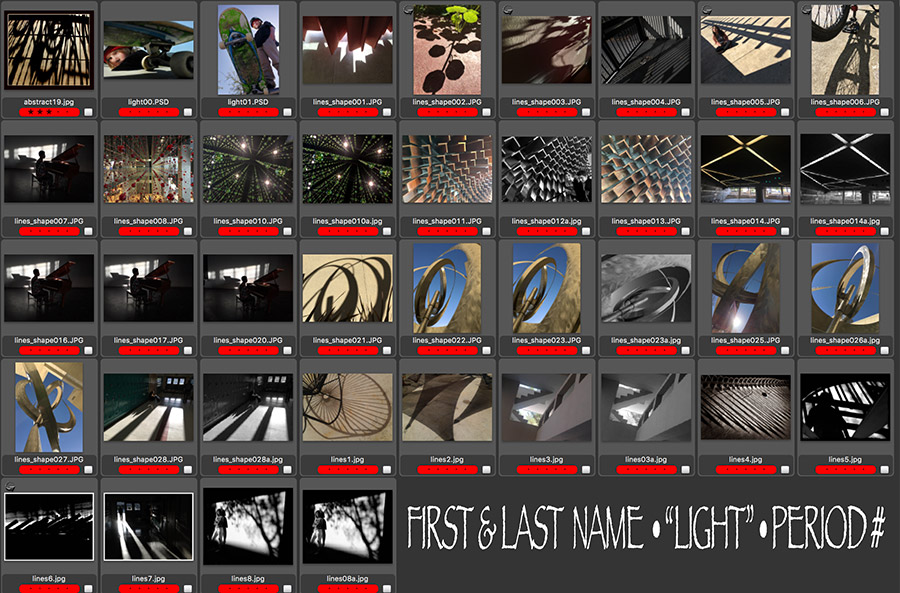 lastname3 (this is the proofsheet) For example, if I was submitting the "First Shoot" assignment, for my submissions would be named: mrv1 mrv2 mrv3