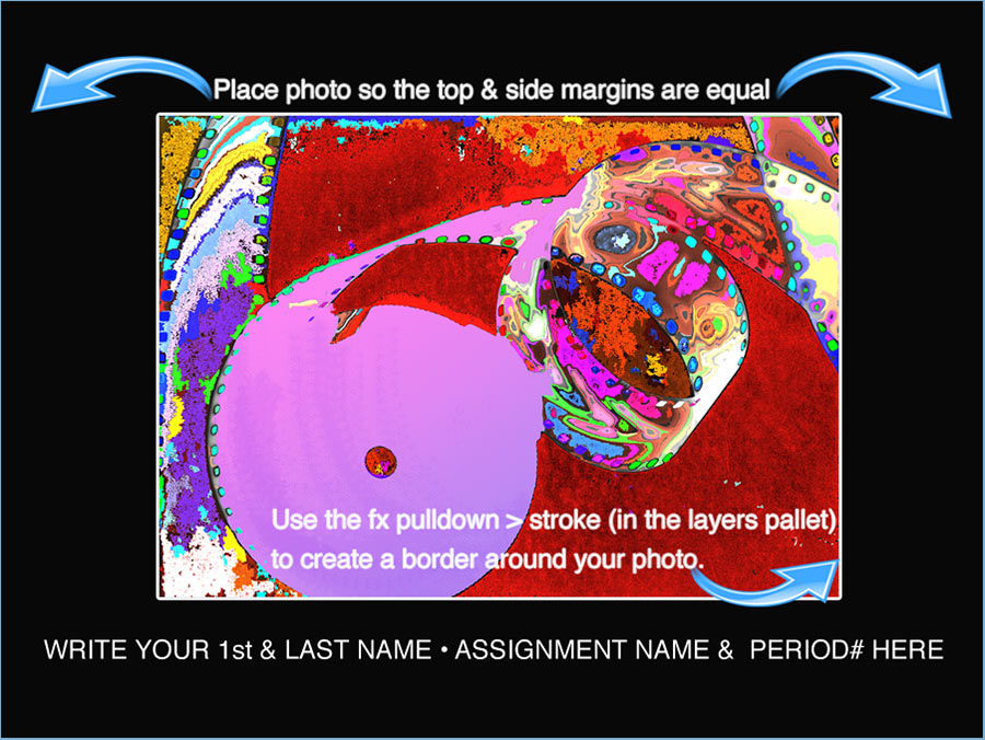 •To submit your photogram asssignments, put one image on each Photoshop slide background.
