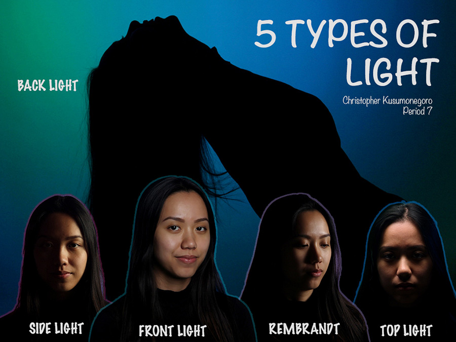 •Using the studio lights and a DSLR camera, shoot your model illustrating 5 types of lighting:
