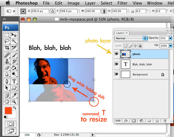 Image: Press the "Apple" or "Command" key and the letter "T" to transform the image. Then hold