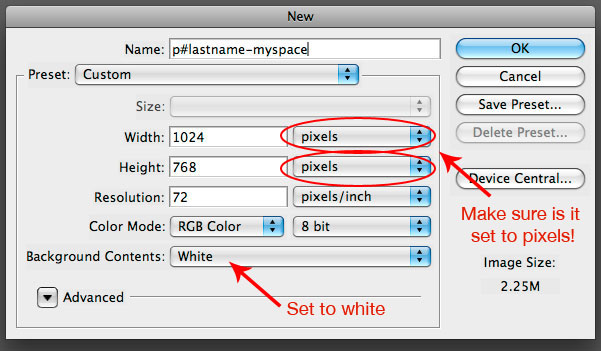 a Photoshop Slide: Profile Page Assignment In Photoshop: File > New>